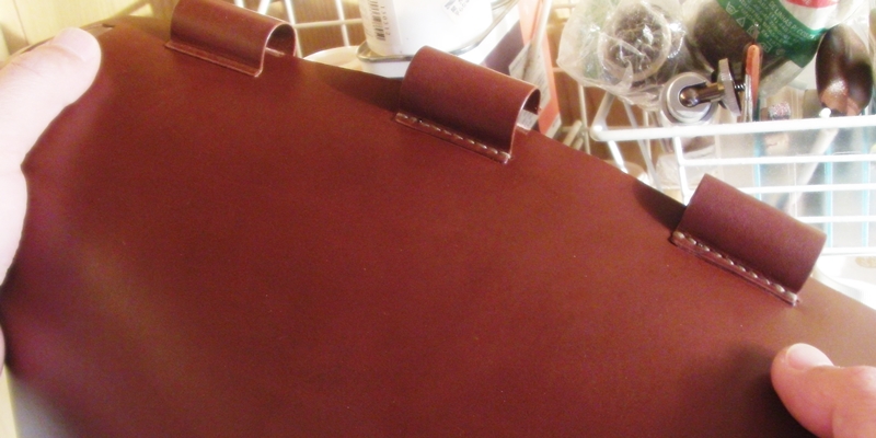オーダーメイドのA4ノートカバー作りも、本体の加工に入って参りましたー。