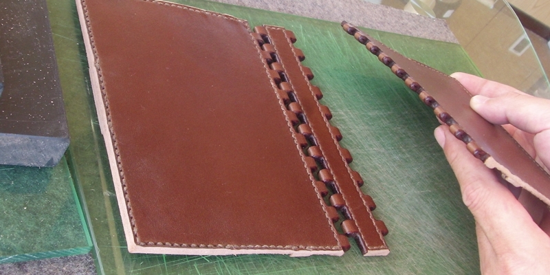 カテゴリー ブログ 2014年10月7日 四十四カ所磨き 投稿者 作成者: To Be 投稿日 2014/10/07 2014年10月7日 四十四カ所磨き へのコメントはまだありません 仕上がったばかりのレザーの蝶番 仕上がったばかりのレザーの蝶番 数にして44ヶ所。 凸凹の、凹んでるとこの内側を、一つひとつ磨き上げます。 レザーの切断面があらわになってるとこですね。 ココはねー。 仕上がりが、直線のとこと同じレベルにはならなくて。どうしてもですねー。 それで、磨き方は色々な方法を試してきまして。 ステンレスの棒や、棒ヤスリの持ち手の部分や、あげく、つまようじに帆布を貼り付けたものを作ってみたりしてます。 さて…磨き上がりました、蝶番。どうでしょね。 ここまで来れば、間もなく完成です。オーダーメイドのブックカバー。 関連ページ 2015年2月9日(第二部) 手強いです、内側に凹んだ曲線 2015年7月3日 まもなく完成、名刺入れとブックカバー 2014年12月15日 真っ白なステッチを求めて 2015年2月6日(第二部) 蝶番の仕込み完了~っと 2014年8月1日 磨きあげた蝶番を接写 共有:FacebookTwitterメールアドレス印刷続きを読むPocketPinterestTumblrLinkedInReddit タグ オーダーメイド, 仕上げ, 蝶番のレザーブックカバー ← 2014年10月6日(第二部) 月と埃の中で → 2014年10月7日(第二部) 「絶対に押すなよ」が「押せ」の合図 コメントを残すコメントをキャンセル このサイトはスパムを低減するために Akismet を使っています。コメントデータの処理方法の詳細はこちらをご覧ください。
