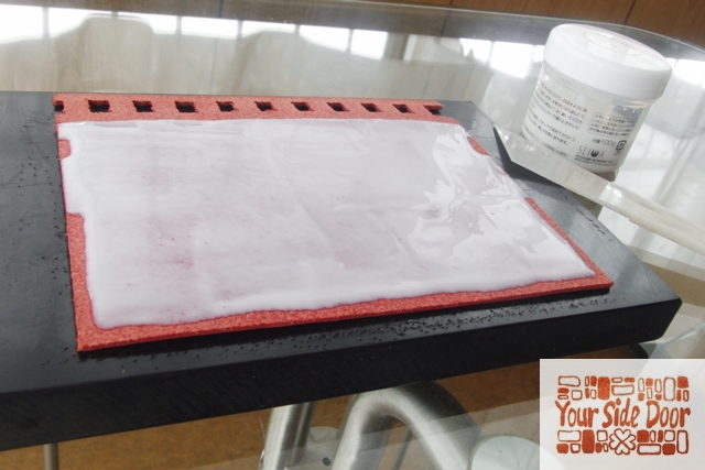 「床の樹脂は指で塗ります…(小声で)それでもヘラで塗ります。」つって。