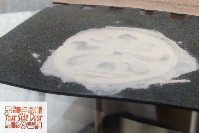 ロゴの裏側の空洞に樹脂を入れる工程が続きます。
