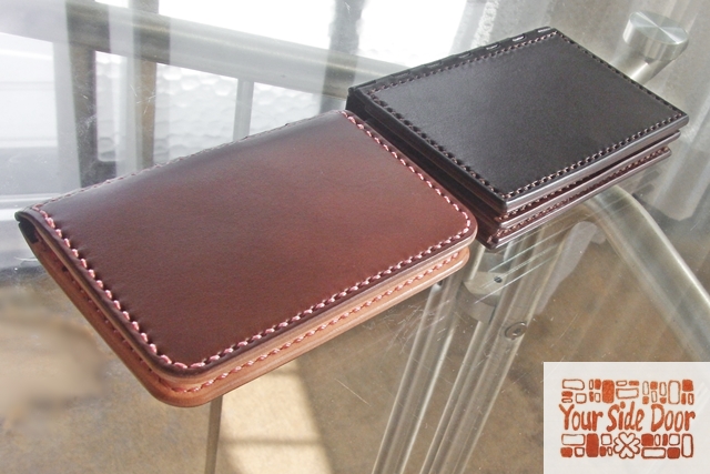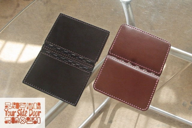 2014年12月20日 完成、ペアのレザー蝶番の名刺入れ