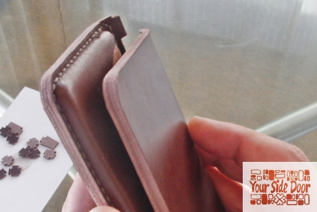 さて、名刺入れはコバ(裁断面)にヤスリで面を出してます。