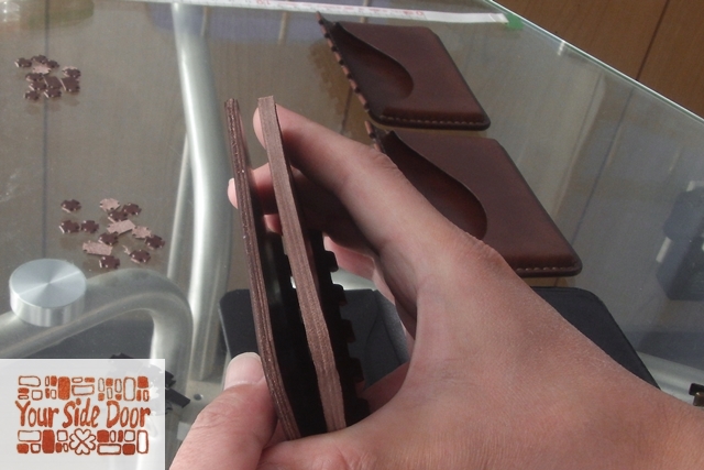 続いてコバ(裁断面)のヤスリ掛けです。縫うための準備ですな。