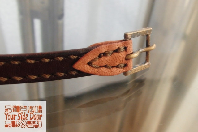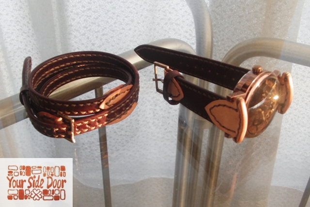 葉っぱの形のヌメ革は、腕時計バンドと共通する雰囲気を持つためのポイントです。