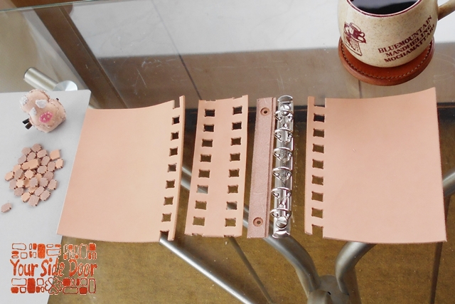 デザインカッターでもって、革に穴を開けてゆきますよ。
