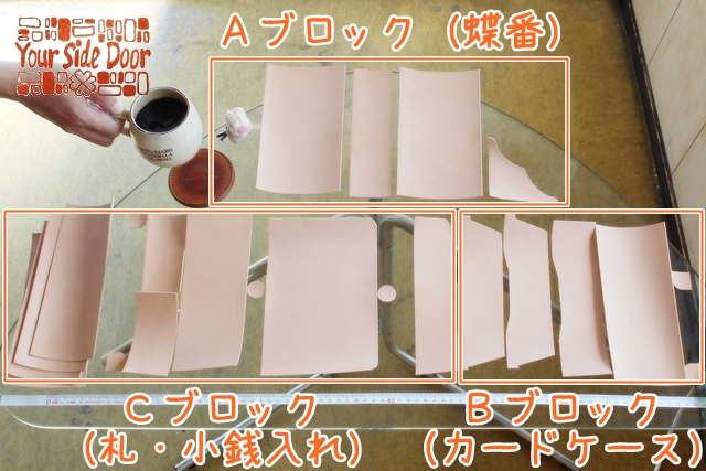 レザー蝶番の長財布のパーツ達、裁断しましたよ~。