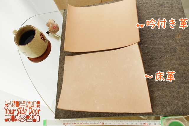 吟(ぎん)付きの革と床革(とこがわ)です。
