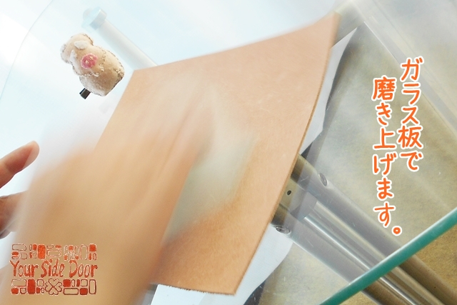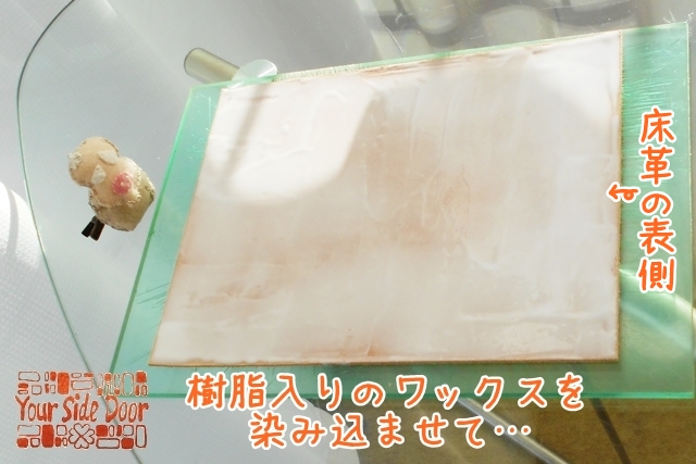 さて、オーダーメイドのマウスマットは、床革(とこがわ)にワックスを染み込ませて磨いております。