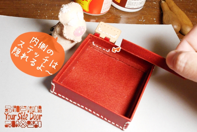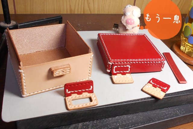 さて、気を取り直しまして、本番の “レザー蝶番の宝箱” づくりで~すよっ。