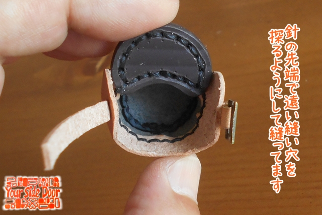 針先で縫い穴を探りながら縫ってますよ~。