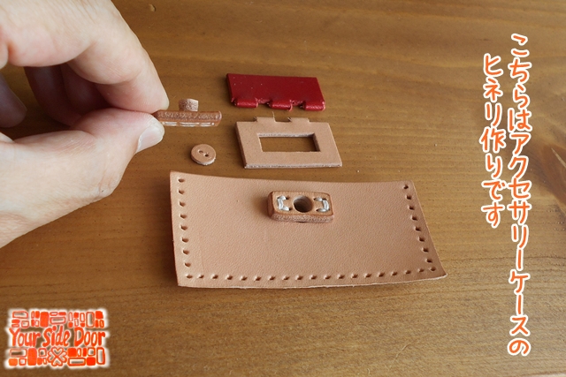 革の“ヒネリ”をこしらえてるとこです。