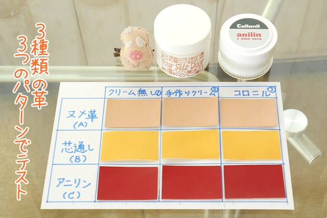 1枚目の写真は革用クリームの実験の経過ですね~。