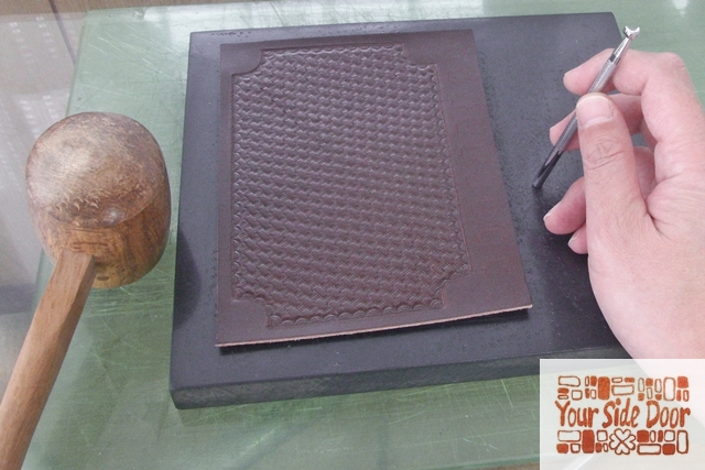 革は水を含ませて打刻するもんで、名入れは全てオーダーメイドなんですよ。