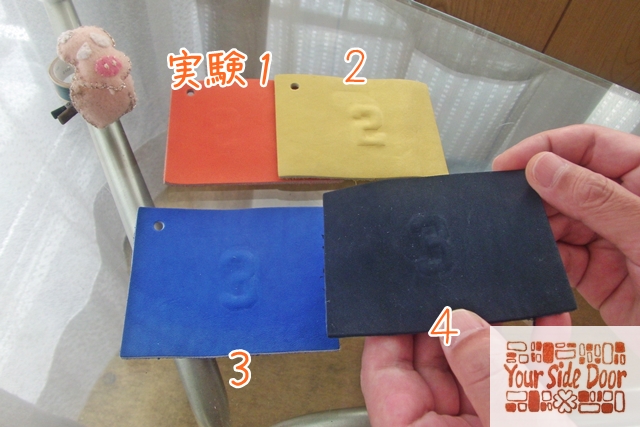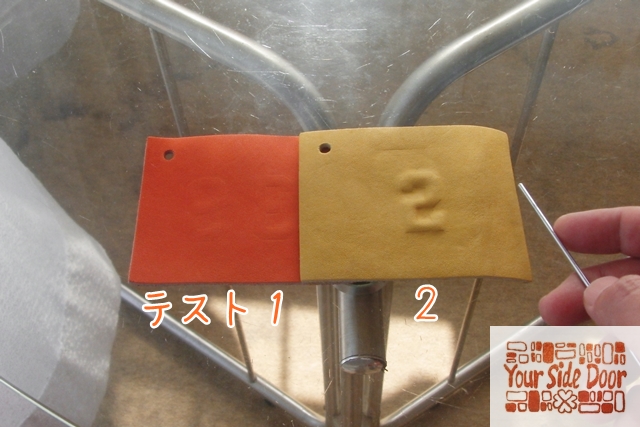 クロム鞣し革のエンボス加工の実験です。