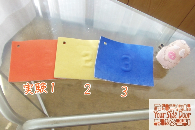 5回目の実験で、クロム革のエンボス加工ができました。