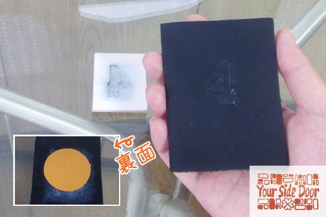 クロムなめし革のエンボス加工っで~す。